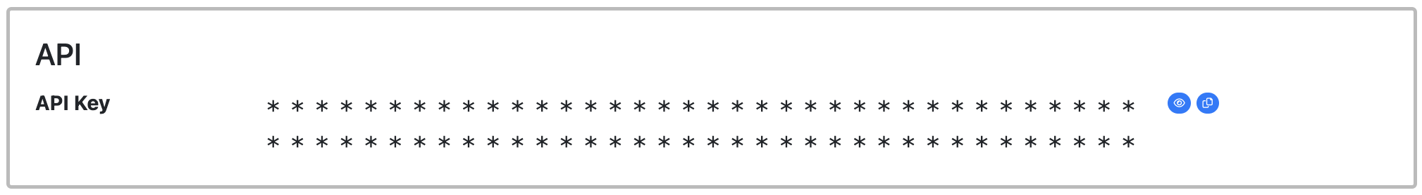 By default the key is hidden with two buttons providing the option to either reveal the key or copy it directly to the clipboard.