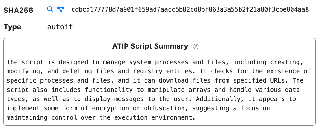 ATIP automatically enumerates the capabilities of script based malware in quickly ingestible heads up summaries.