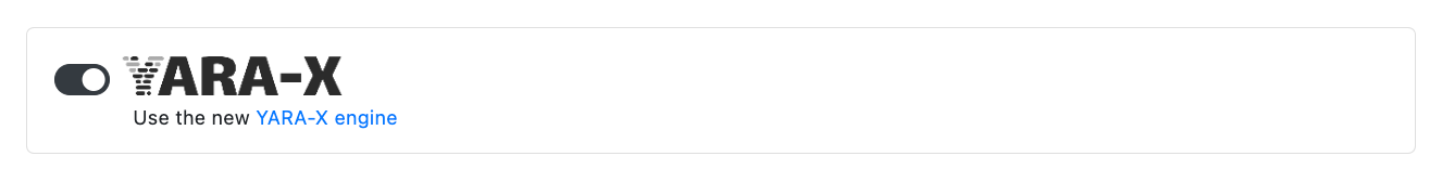 YARA-X is not fully compatibility with YARA and we recommend selecting the engine that was your rules are designed to run on. Full documentation on the differences between the engines can be found in the YARA-X docs, Differences with YARA.