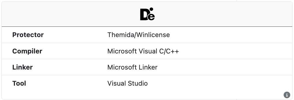 The open source tool Detect It Easy (DIE) is run on all samples to extract information about the compile and linker. DIE also identifies some common installers, protectors, packers, and obfuscators. This information is independent from the internal UnpacMe packer detection engine.