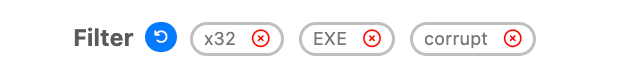 YARA matches can be refined by applying filters. Filters are available for tags and YARA labels associated with the results. To apply a filter simply click the tag, or yara label and select the desired filter action.